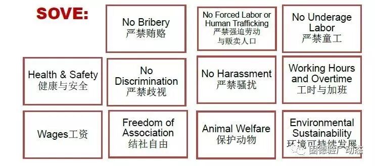 Target近期在供应商培训大会上正式宣布自2017年6月1日起正式采用新版的SOVE标准。在新版的SOVE标准中新增了一个条款--保护动物;另外在健康与安全以及环境可持续发展两个条款上有了非常大的变化。